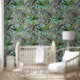 Blauw tropisch pauw bloemig regenwoud behang