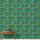 Blauw tropisch pauw bloemig regenwoud behang