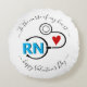 Zuurzame Valentijnsdag stethoscoop blauw RN rond kussen. Een gepersonaliseerd ontwerp met de zinsnede "Voor de zuster van mijn hart" en "Happy Valentijnsdag" met een stethoscoop met de initialen RN in blauw en een rood hart.