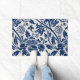 Dit ontwerp heeft een elegant floreel patroon. De bloemen zijn in een donkere schaduw van blauw. De bloemen lijken een beetje op dikken of kwaden, maar het zijn artistieke voorstellingen van generieke planten. Ze hebben grote bladeren die rond de bloemen groeien.