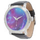 Blauw Violet en roze Cosmic Swirly Fractal Horloge
