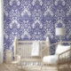 Blauw & Wit Barok Rococo Rozen Patroon Behang