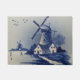 Deze prachtige Delftware-scène is een , met de hand geschilderd blauw en wit landschap van het landelijke Holland. Heel ouderwets — een mooie windmolen en een paar gebouwen naast water. De scène werd gevonden op een heel oude antiek tegel. Dit aardewerk landschap is het perfecte blauwe en witte ouderwetse kijkje voor onze geschenken. In Delft in Nederland werd potten uit de 16e eeuw gemaakt tot op de dag van het cadeau. Het wordt gemerkt door zijn blauwe en witte kleur, en gebruikt in siervoorwerpen, borden, tegels, en ander sierdoeleinden.