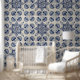 blauw wit geometrisch ventilatorpatroon behang