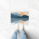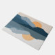 Abstracte kleurrijke illustratie van zonsopgang met blauwe bergen weerspiegeld in het meer