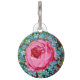 Kleine blauwe bloemen omringen deze mooie roze rozenknop. Maakt een heel mooi, vrouwelijk cadeau voor de dames. kunstwerk met kleuren blauw en roze.