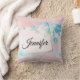 Een kussen met mooie blauwe bloemen op een roze achtergrond. Een afbeelding van een rechthoek vormde pagina van het notitieboek die over bovenkant voor u wordt gelaagd om jouw tekst binnen te schrijven.
