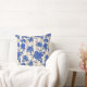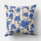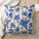 Blauwe boeketten van rozen op een gestreepte achte kussen
