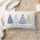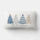 Kerstvakantie Lumbaal Kussen met moderne eenvoudige blauwe kerstbomen. Personaliseer de tekst eenvoudig - Kate Eden Art