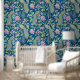 Blauwe Chinoiserie pauw bloemschil en stok Behang