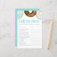 Mingle met de gasten om de antwoorden op de vragen te vinden! Voeg dit plezier de Gastspelkaart bij je baby shower. Deze baby shower trivia-spelkaart is voorzien van waterverf blauwe, witte en chocoladedonuts met kleurrijke sproinkles. Personaliseer door namen, gebeurtenis en datum toe te voegen. Deze waterverf geeft baby shower spel dat perfect is voor elk seizoen of elk thema van de baby shower.