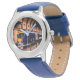 Blauwe en gele trein horloge