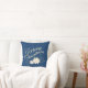 Deze kussen hebben een geïnspireerde digitale afbeelding van witte punsettias op een donkerblauwe achtergrond. De manuscripttekst, in een gouden gradiëntkleur, leest: Gelukkig kerstfeest.