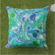 Blauwe en groene marmervochtige kunst Abstract Buitenkussen