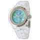 Blauwe en groene marmervochtige kunst Abstract Horloge