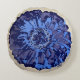 Briljantblauw met accenten van paars barstten uit van een zilveren achtergrond in dit afbeelding. De ronde kussen is de perfecte achtergrond voor dit schilderij.