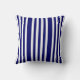 Zeemblauw en witte streep kussen. Modern en chic. De strepen draaien horizontaal aan de ene kant en verticaal aan de andere. Je koos de beste manier voor je decor.