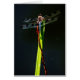 Blauw en zwart Dragonfly op groen en rood gras. draak, vlieg, vliegen, libellen, libellen, libellen, vliegen, draken, insecten, insecten, insecten, tuin, natuur, groei, planten, libellen en voogdijvliegen, kleurrijk, blauwgroen, blauw, groen, paars, fuchsie, zwart, modern