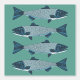 Een blauwgetinte forel of zalm in volkskunststijl op een lichtblauw-groene achtergrond. U kunt de achtergrondkleur wijzigen.