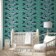 Blauwe Folk Art Forel/Zalm Behang