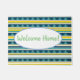 Blauwe en gele strepen en driehoeken, Welkom, aangepaste tekst.