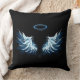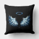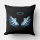 Blauwe Ggloed Angel Wings op zwarte achtergrond Kussen