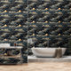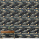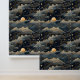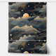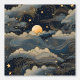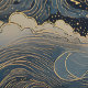 Een blauwe nachtelijke hemel als achtergrond, versierd met sterren en een maan. Retrostijl