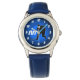 Op zoek naar een cadeau voor je favoriete hockeyspeler? Dit prachtige polshorloge heeft de zwart-witte omtrek van een hockeyspeler op het ijs, over een abstracte blauwe achtergrond. U kunt het horlogegezicht aanpassen met twee initialen of een jersey-nummer om het de perfecte cadeau te maken!