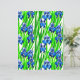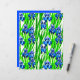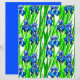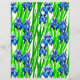 Papier in een waterverf van indigoblauwe irissen en groene bladeren, tegen een witte achtergrond