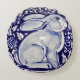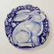 Mijn originele, copyrighted blauwe en witte keramische konijnenontwerp is perfect weergegeven op deze kussen, met zelfs de lichtreflecties op de ruit.