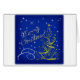 Mooie blauwe kerstboomscène met sneeuwvlokken. Perfect wintergeschenk.
