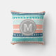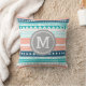 Grafische en moderne blauwgroen turquoise aqua blauw, perzik oranje roze, grijs, marineblauw en wit tribaal patroon aangepaste monogram decoratieve werpkussen. Volledig aanpasbaar, voeg uw eigen initiaal voor een echt uniek punt van het huisdecor toe.