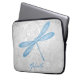 Bescherm uw laptop terwijl u onderweg bent met een speciale blauwe lippenhoes voor uw laptop. Het ontwerp van het sleeve is voorzien van een kleurrijke libel, een zachte witte florale wijnstok tegen een licht grijze grijze demasachtergrond met een gebied dat zich aan het jouw naam aanpast. Extra cadeauobjecten die bij dit ontwerp beschikbaar zijn en een verscheidenheid aan kleuren. Personaliseer je voor jezelf of maak een geweldig cadeau.