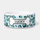 Deze blauwe pendenkom heeft een digitaal gemaakt bladzijdeafdrukpatroon met een hondenboog die een aanpasbaar tekstgebied bevat voor de naam van een huisdier.