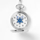 Mannen over de hele wereld hebben hun "Thumbs Up" gegeven aan dit prachtige horlogeontwerp! Het witte gezicht, de heldere bezel en het zilveren hoesje is een trending look die nog unieker en specialer is gemaakt door de door de blauwlazuurblauwe lazuli geïnspireerde Magen David, gecentreerd op het gezicht, zwarte numerieke uurmarkeringen die het uiterlijk van het Hebreeuws nabootsen en aangepaste tekstvelden voor de initialen van de drager.