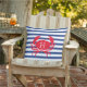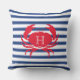 Blauwe Marine Witte Rode Krab Nautische Moderne Strepen Outdoor Kussen