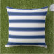 Blauwe marinewitte legant moderne strippes buitenkussen