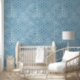 Opvallend blauw bloemig, metalen behang voor elke kamer in uw huis.