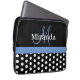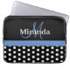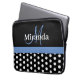 Blauwe monogram zwarte witte poladot laptop sleeve