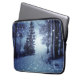 Blauwe Moonlit Magische Bos Winter Scène Laptop Sleeve
