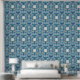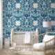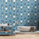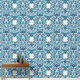 Dit luxe behang heeft een patroon gebaseerd op Ottomaanse porseleinen tegels met bloemenmotieven en blauw kleurenpalet.