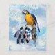 Blauwe exotische papegaaivogeltantaarns op een zachte blauwe veer-achtergrond