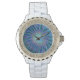 Blauwe Paarse bloem Abstracte fractale kunst Horloge