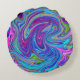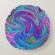 Blauwe, Roze en Paarse Groovy Abstracte retroart Rond Kussen