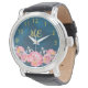 Blauwe roze floralen monogram initiaal horloge