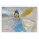 Een mooie fee met blauwe jurk die tussen vakantiepapier, glitter en licht loopt. Delicate sterren lijken haar overal te volgen. Tabletopfotografie.