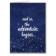Eenvoudig maar perfect voor nieuwe bedelingsevenementen zoals afstuderen, nieuwe baby's of nieuwigheden, is dit Blue and White Sterrennacht Sky "En zo, het Adventure begint" wenskaart de perfecte manier om woorden van aanmoediging en liefde aan te bieden. Binnen typografie kan in uw gewenst gezegde worden veranderd of schrapt om uw eigen speciaal bericht te schrijven.