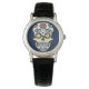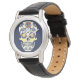 Introductie van onze horloge met blauwe suikerdoders en zwarte leren band. Dit klassieke tijdstuk heeft een slanke zwarte leren band en een prachtig gedetailleerd suikerdoders-ontwerp in tinten blauw op de wijzerplaat. Suikerdoders, of "calaveras", zijn een belangrijk onderdeel van de Día de los Muertos (Dag van de Doden) vieringen en symboliseren het eren en herdenken van geliefden die zijn overleden. Suikerdoders worden traditioneel vervaardigd met levendige kleuren en ingewikkelde ontwerpen, die de vreugde en viering van leven en dood in de Mexicaanse cultuur vertegenwoordigen. Deze horloge vangt de essentie van deze traditie en combineert deze met moderne stijl en elegantie. De zwarte leren band geeft een tijdloze uitstraling, waardoor het een veelzijdig accessoire is voor elke gelegenheid. Vier erfgoed en ambachtelijkheid met de horloge