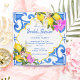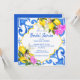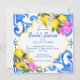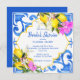Blauwe tegels Bougainvillea en citroen Amalfi Positano Mediterranean style bridal douche sjabloon Marokko style carved border.
