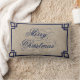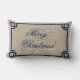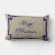 Blauwe Tekst & Beige Linnen Marry Christmas Kussen